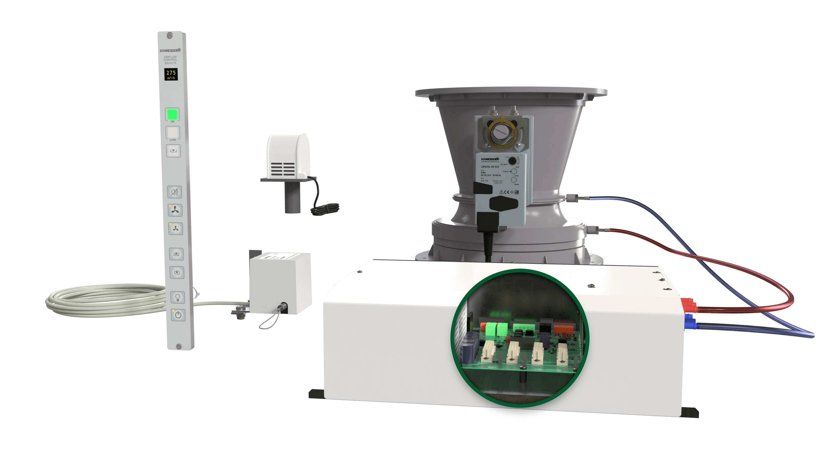 可变的微处理器控制系统,用于控制和监测作为垂直和水平调节窗位置的实时排风量或面风速。